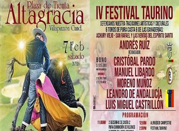 Una prueba ciclística que se realizará el 7 de febrero en horas matinales y que mantendrá cerradas algunas vías y carreteras del norte de la capital, hace que el festival programado en la ganadería de “Altagracia” el 7 de febrero se posponga para el 14 del mismo mes con los mismos alternantes y ganaderías participantes además de la muy grata presencia del maestro Cesar Rincón.